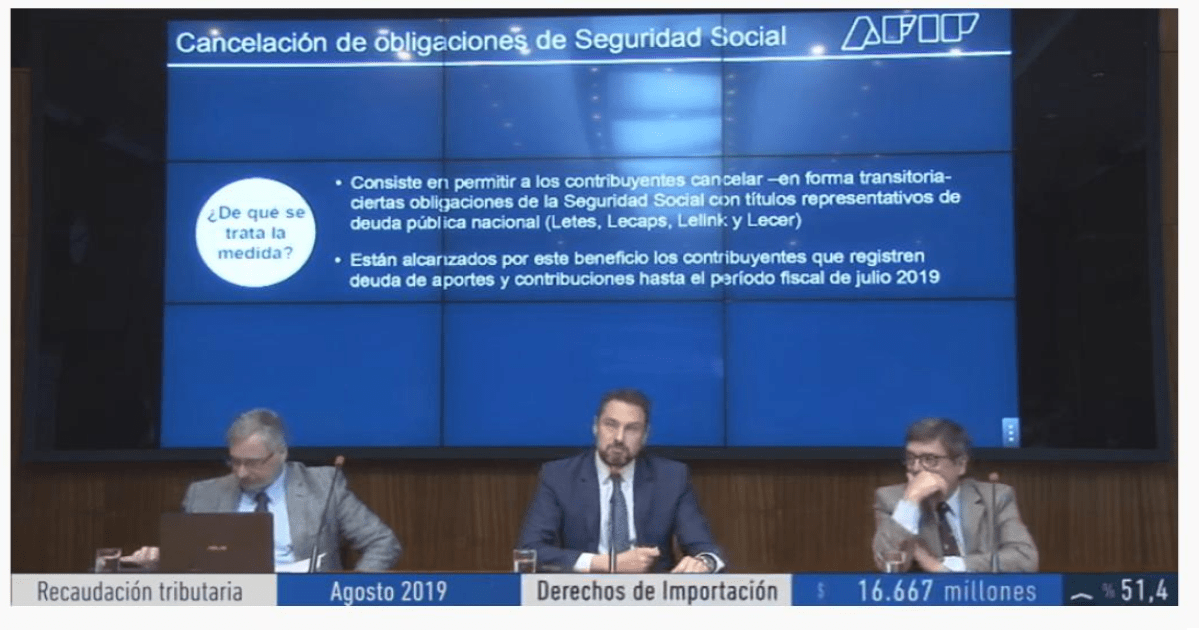 Asó lo informó en la conferencia de prensa en la cual se anunció la recaudación tributaria del mes de agosto de 2019, Leandro Cuccioli.