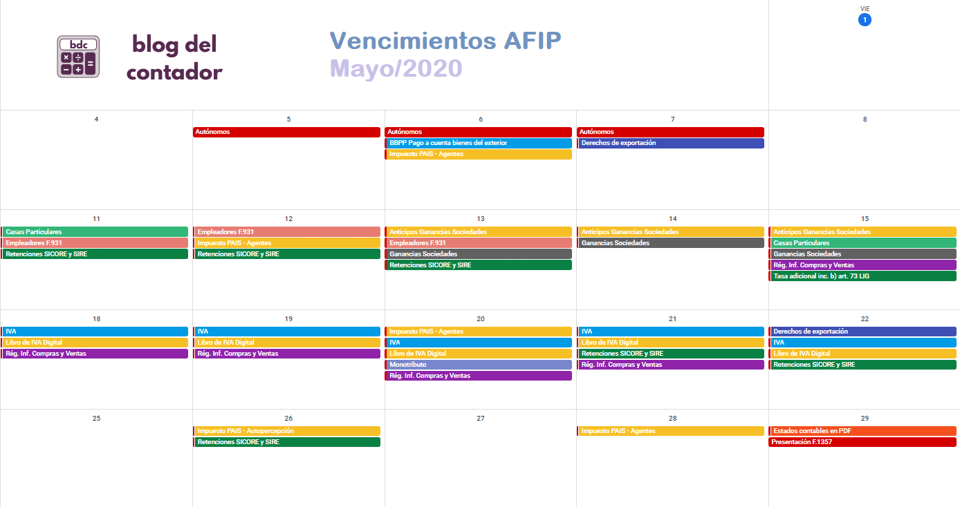 Ponemos a disposición el calendario de vencimientos AFIP mayo/2020 correspondiente a las obligaciones tributarias y de la seguridad social.