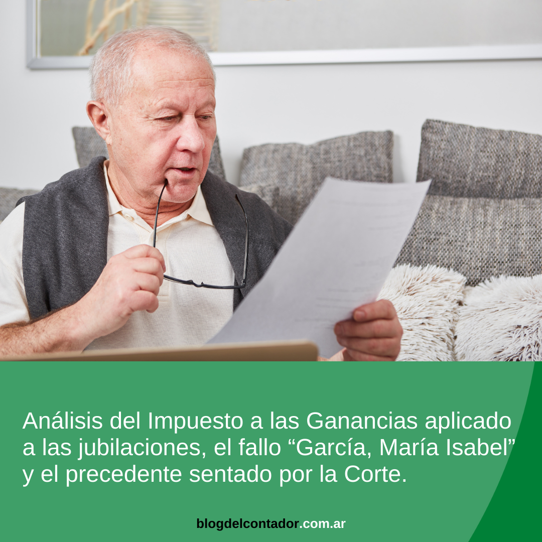 En este artículo analizaremos el Impuesto a las Ganancias aplicado a las jubilaciones y el fallo “García, María Isabel” en el que la Corte Suprema de Justicia ha sentado un precedente para el tratamiento de este tema. Actualmente, el tributo ha sido modificado por la Ley 27.617, que modificó los mínimos no imponibles a aplicar. De esta forma, el artículo 7 señala los montos y requisitos necesarios para tener en cuenta la deducción. Artículo 7: “Respecto de las rentas mencionadas en el inciso c) del artículo 82 de la presente, las deducciones previstas en los incisos a) y c) de este artículo, serán reemplazadas por una deducción específica equivalente a ocho (8) veces la suma de los haberes mínimos garantizados, definidos en el artículo 125 de la ley 24.241 y sus modificatorias y complementarias, siempre que esta última suma resulte superior a la suma de las deducciones antedichas.Lo dispuesto en el párrafo anterior no será de aplicación respecto de aquellos sujetos que perciban y/u obtengan ingresos de distinta naturaleza a los allí previstos superiores al monto previsto en el inciso a) de este artículo. Tampoco corresponderá esa deducción para quienes se encuentren obligados a tributar el Impuesto sobre los Bienes Personales, siempre y cuando esta obligación no surja exclusivamente de la tenencia de un inmueble para vivienda única.”Aquí podemos observar que se determina una deducción específica (que reemplaza al mínimo no imponible y a la deducción especial) para aquellas rentas de cuarta categoría que tengan su origen en jubilaciones y pensiones. A día de hoy, la misma -como consecuencia del haber mínimo en $32.630-, se ubica en $261.040. Sin embargo, en el segundo párrafo la ley establece que dicha deducción no será aplicable si se obtienen ingresos superiores al mínimo no imponible (para el periodo fiscal 2022 es de $ 252.564,84) y para quienes tributen bienes personales. En este supuesto corresponderá idéntico tratamiento que las remuneraciones, ya que se debe tomar como deducción la ganancia no Imponible, la deducción especial no específica y la deducción especial incrementada, si fuera necesaria. Es dable destacar, que lo dispuesto es aplicable a los jubilados de ANSES, de las cajas provinciales no transferidas a la Nación y de los regímenes especiales.